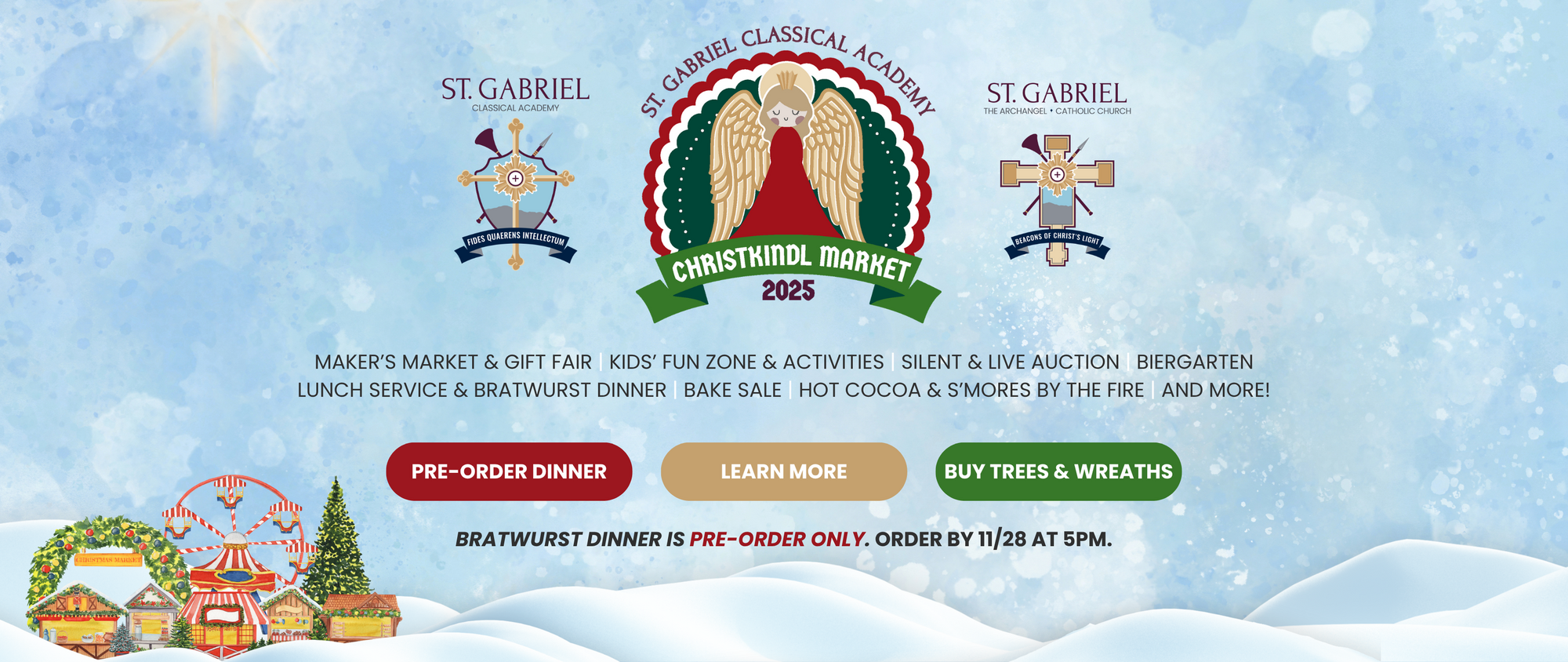 Please join St. Gabriel Classical Academy in celebrating their third annual Christkindl Market on December 6th from 11am - 8pm. The school is raising money for enhanced security, the cafeteria kitchen, curriculum enhancements, and teacher development.